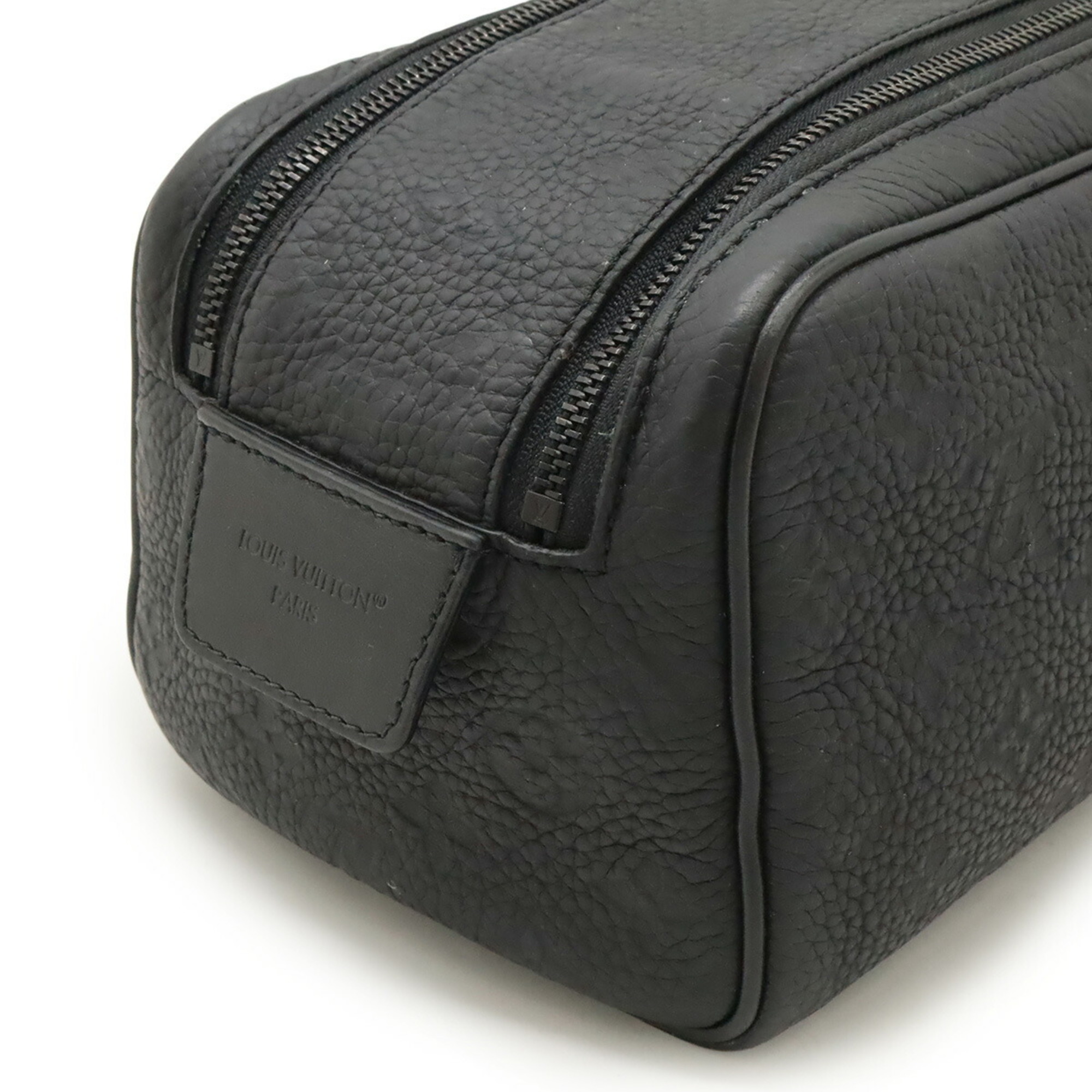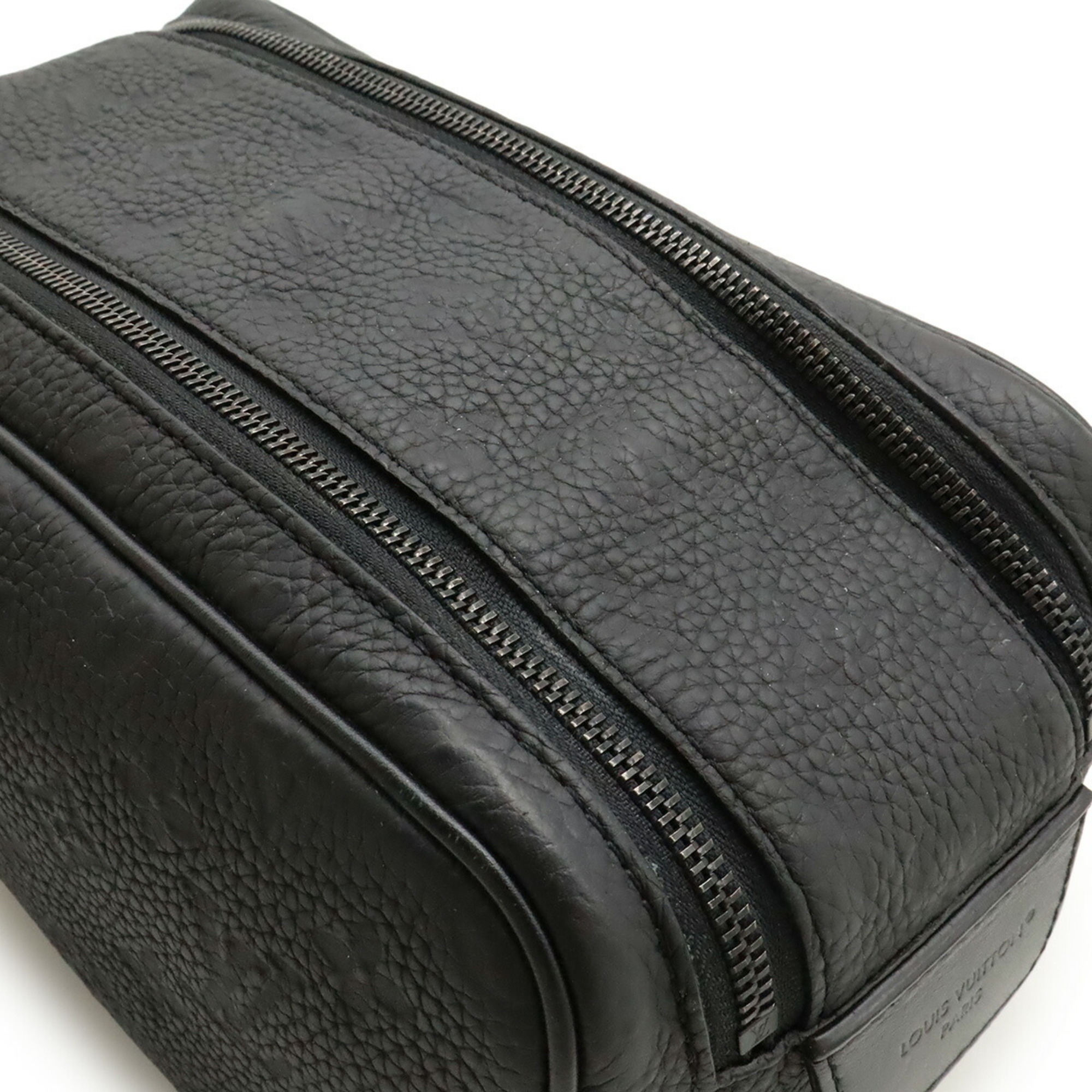 LOUIS VUITTON Monogram Taurillon Dopp Kit Second Bag, Clutch Handbag, Pouch, Noir, Black, M59478