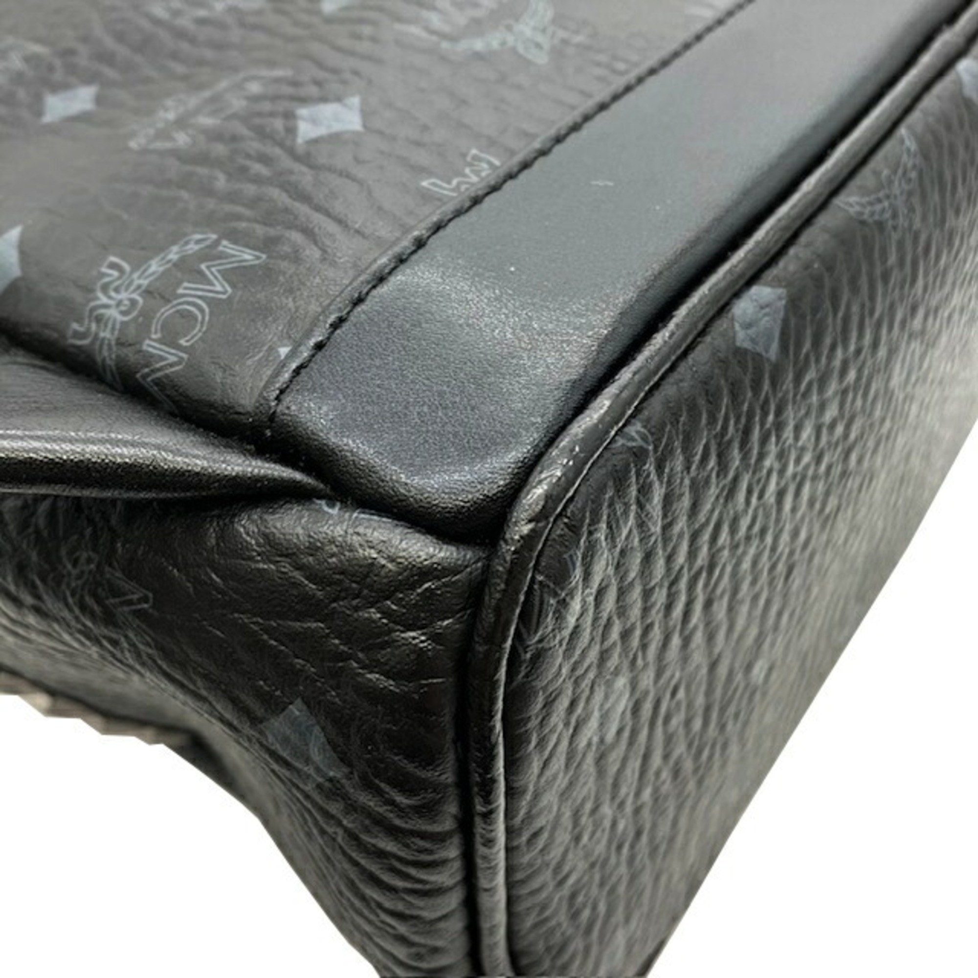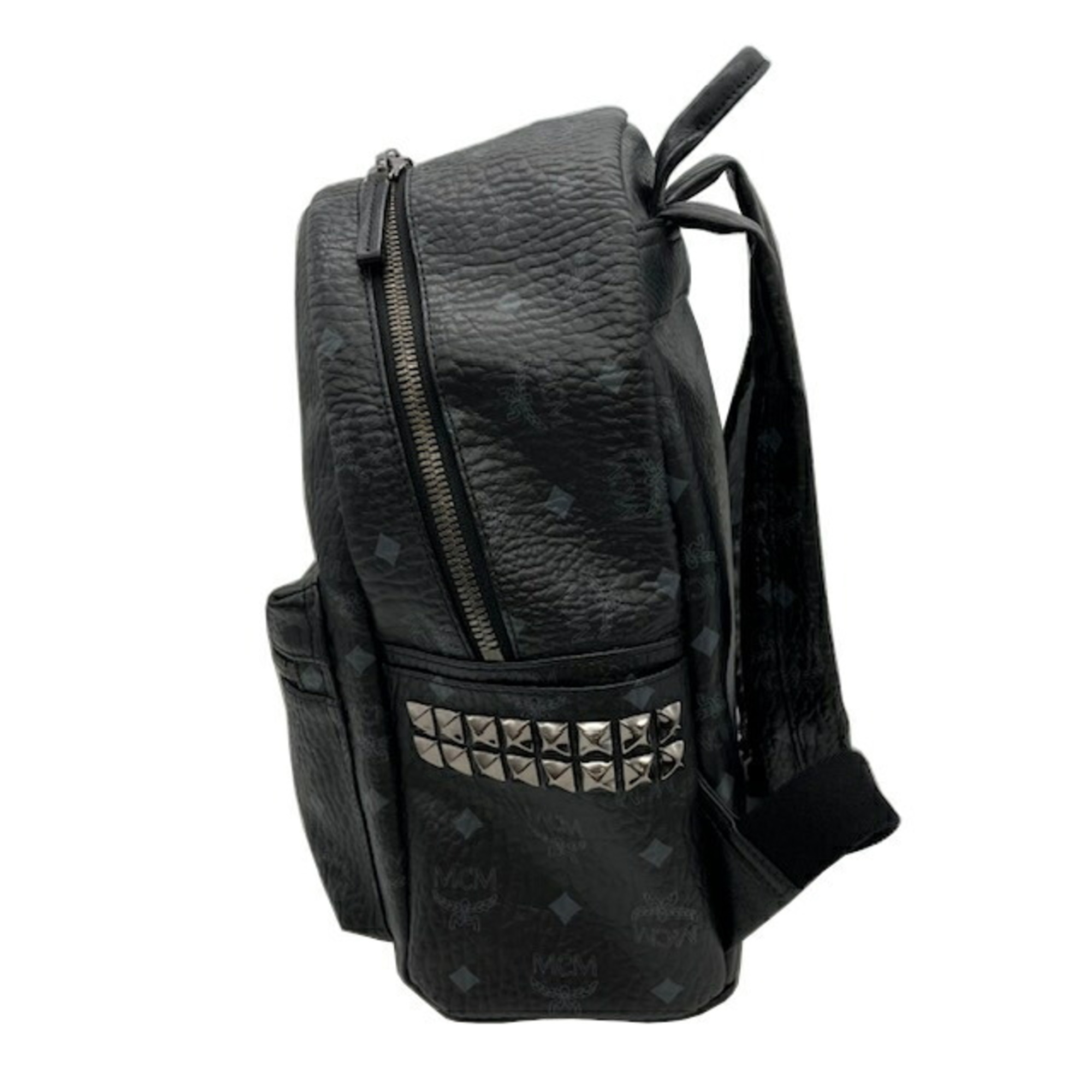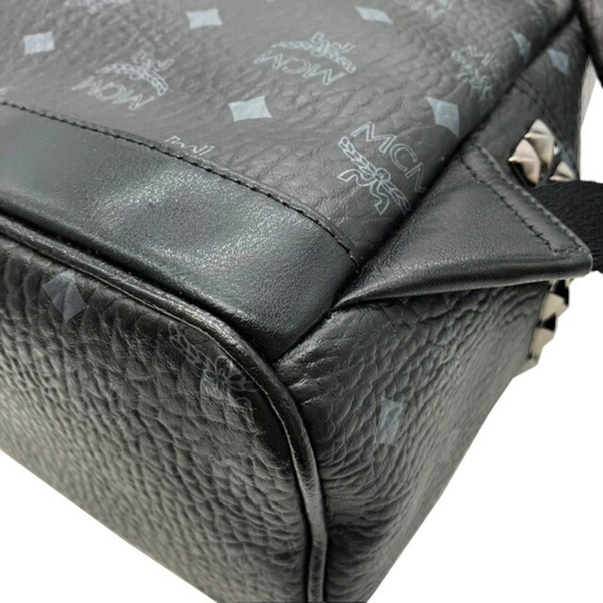 MCM Backpack Side Studs Leather Black Rucksack