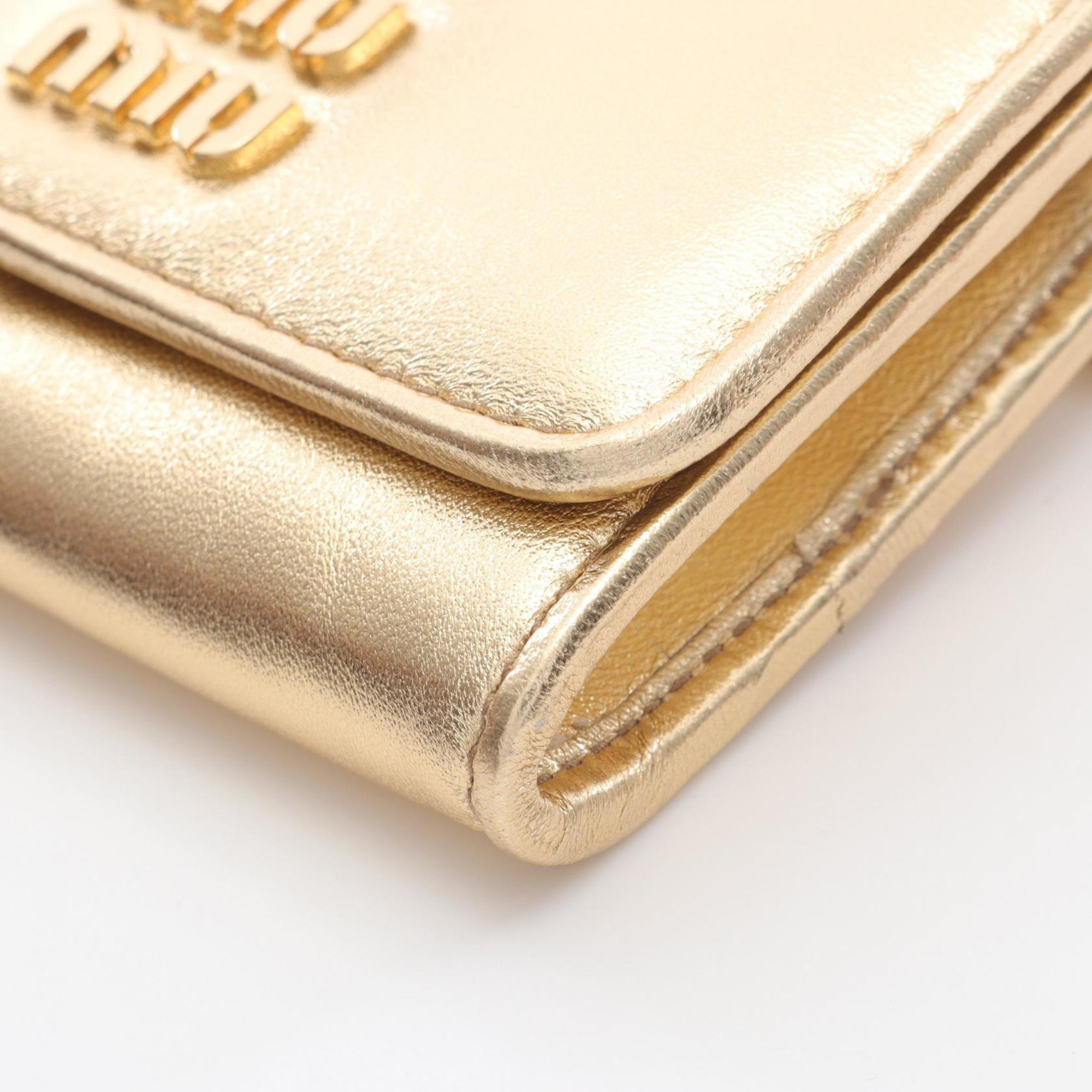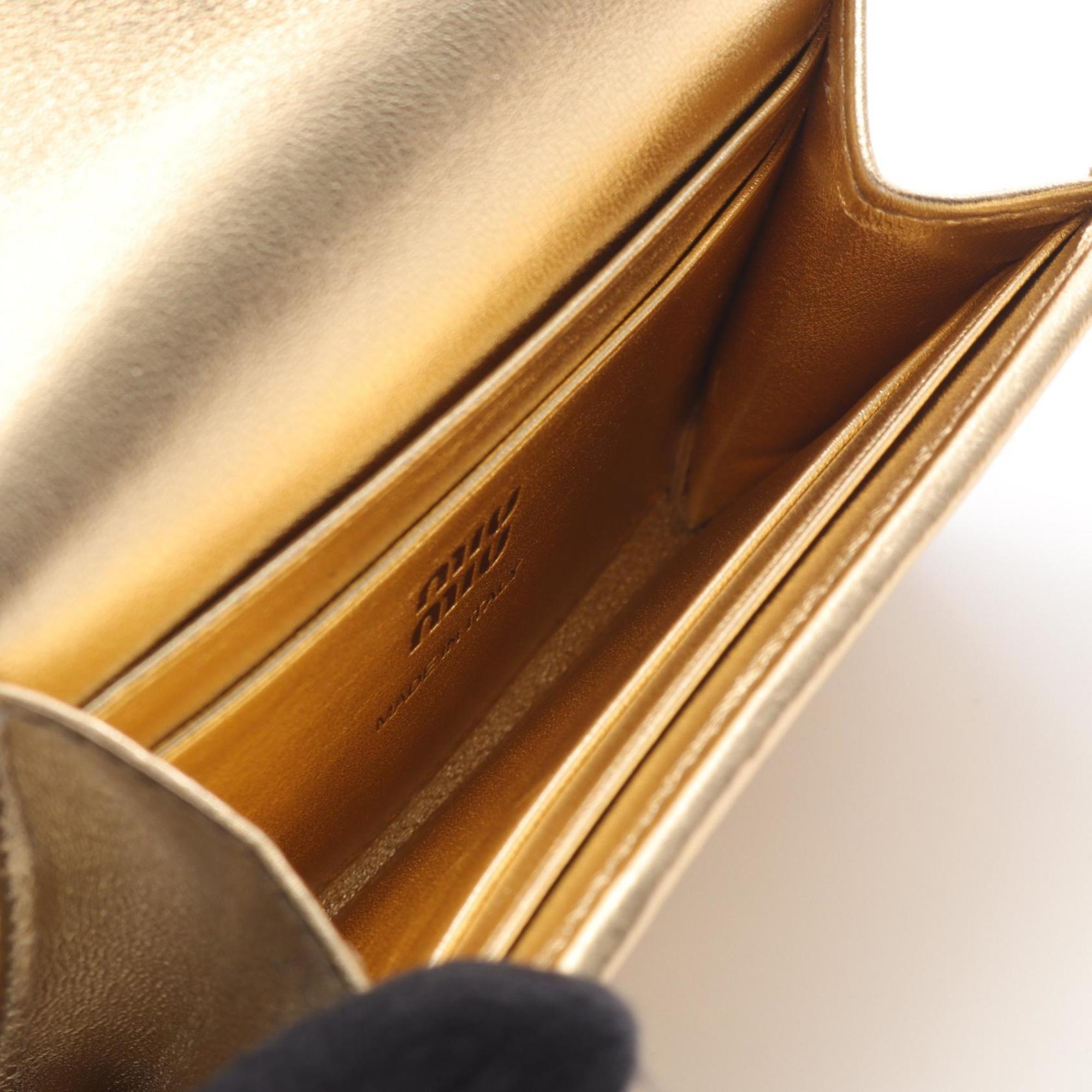 Miu Miu Miu Business Card Case/Card Case, Leather, Women's, Gold, 5MR030