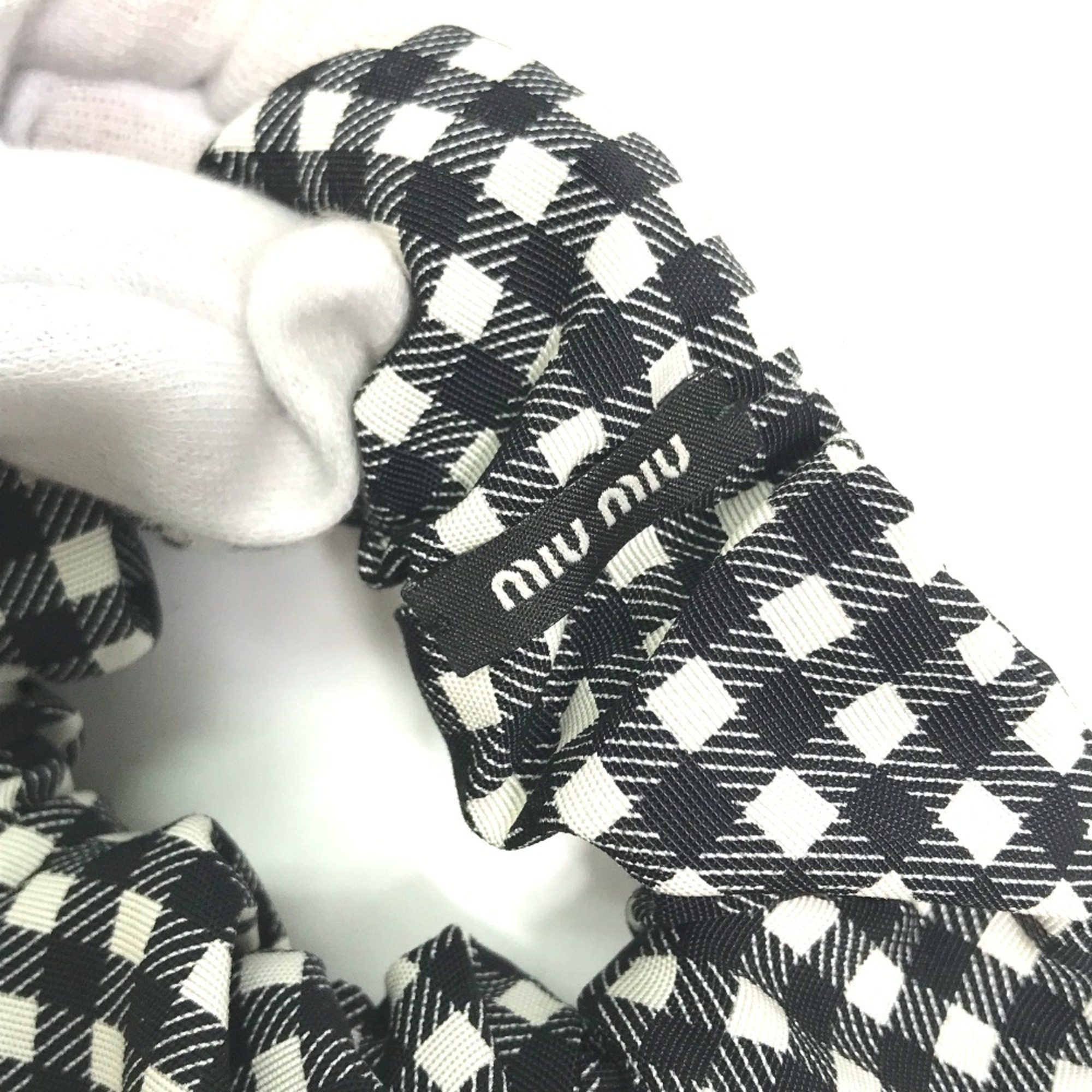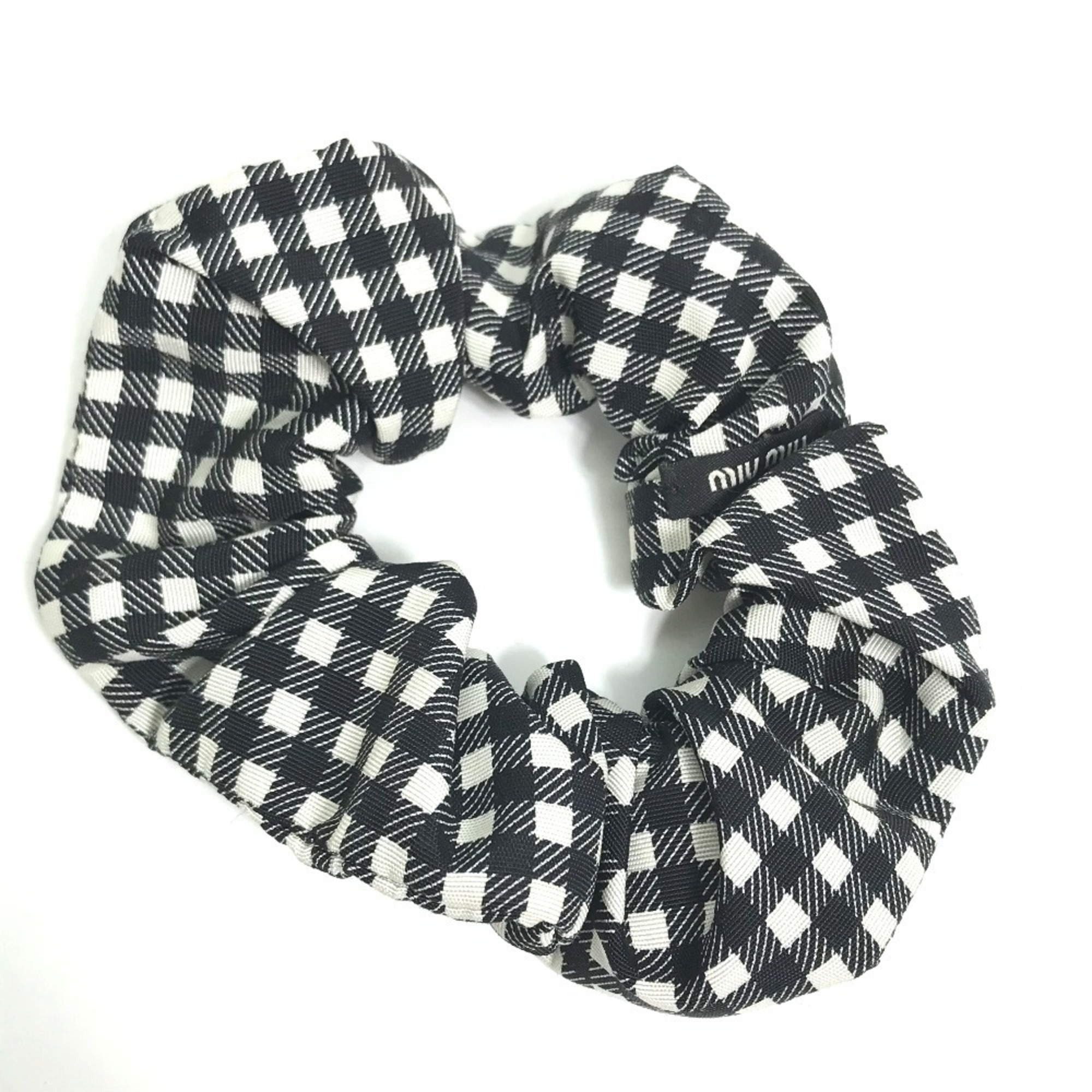 Miu Miu MIU Check Hair Tie Scrunchie Nylon Women's Black