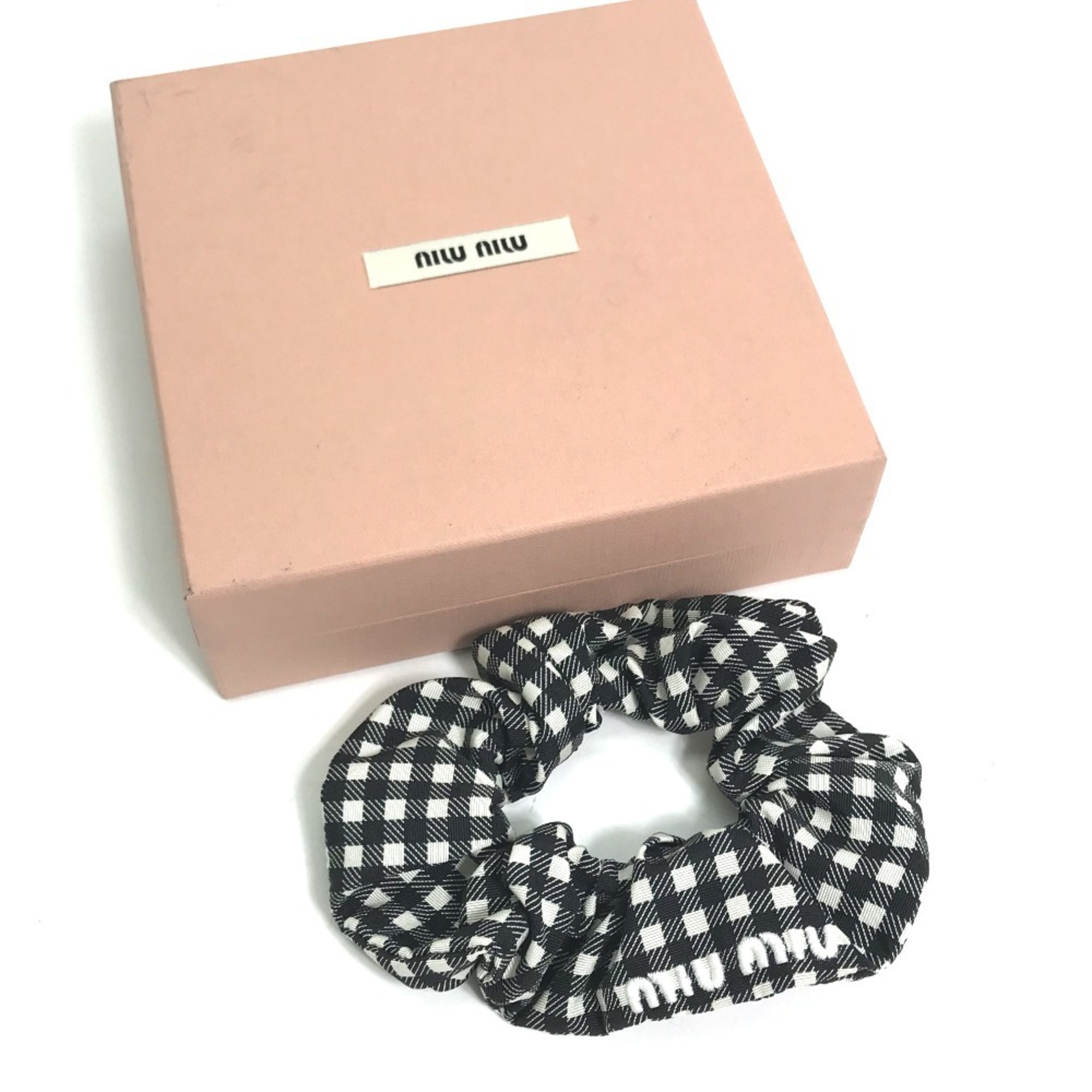 Be the first to review “Miu Miu MIU Check Hair Tie Scrunchie Nylon Women’s Black”