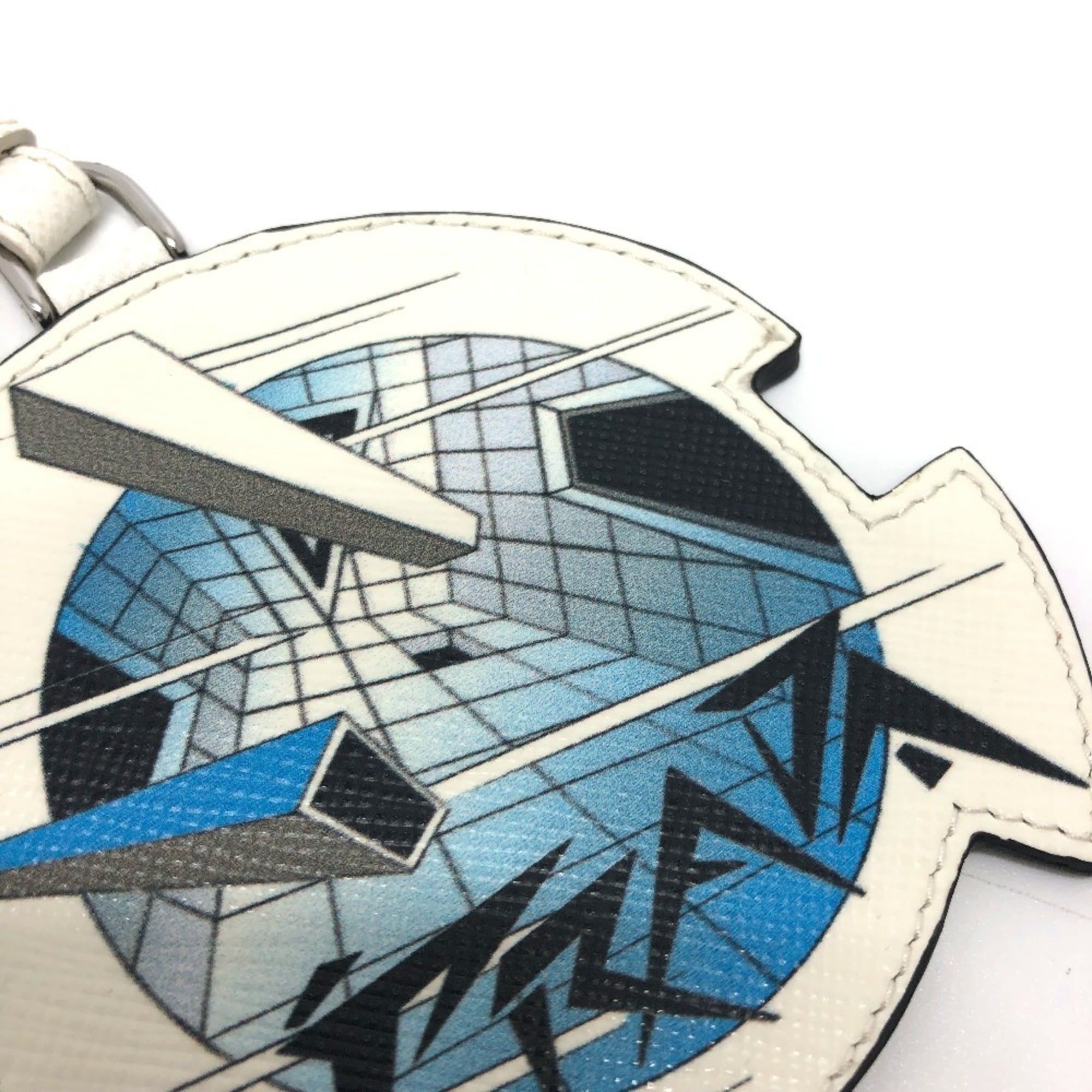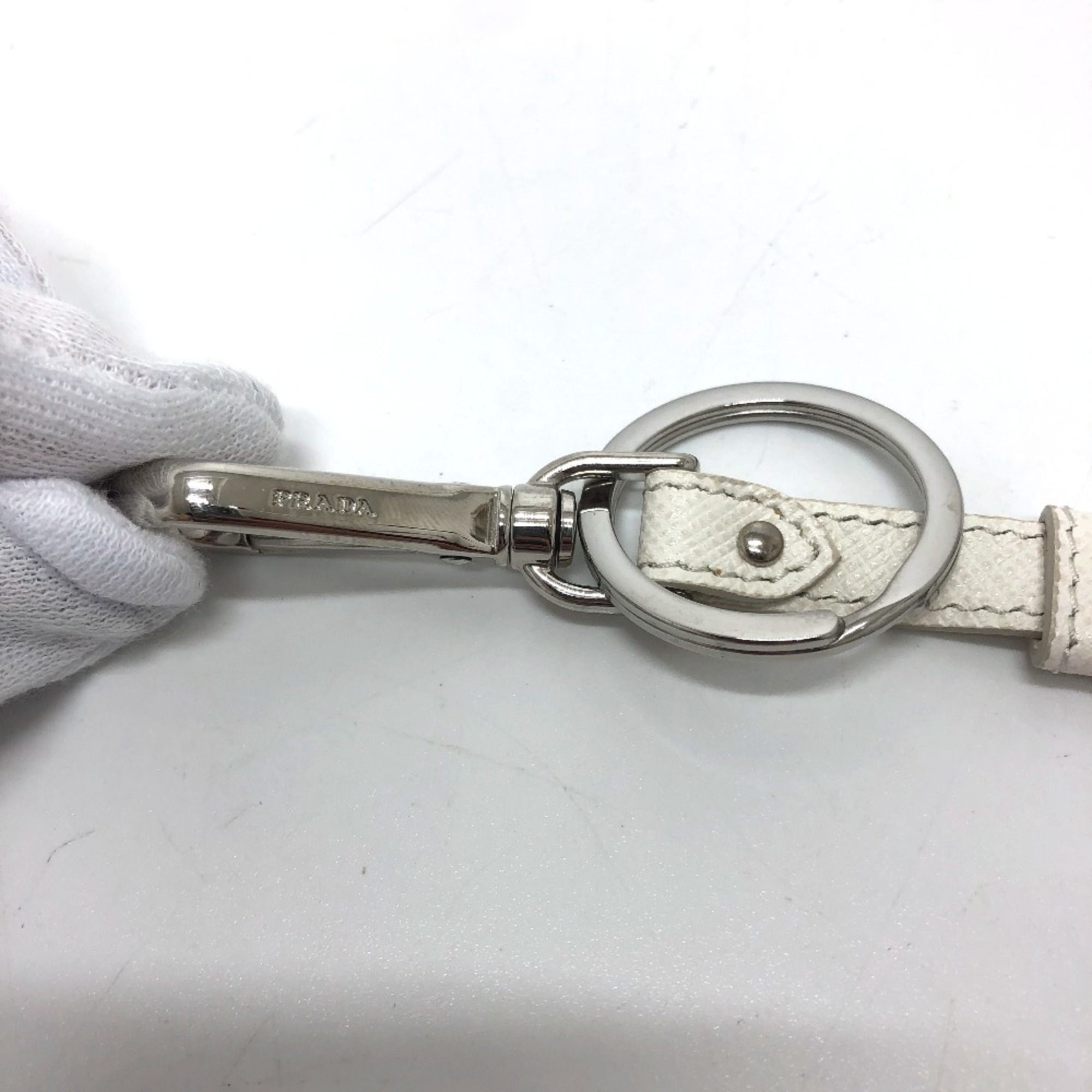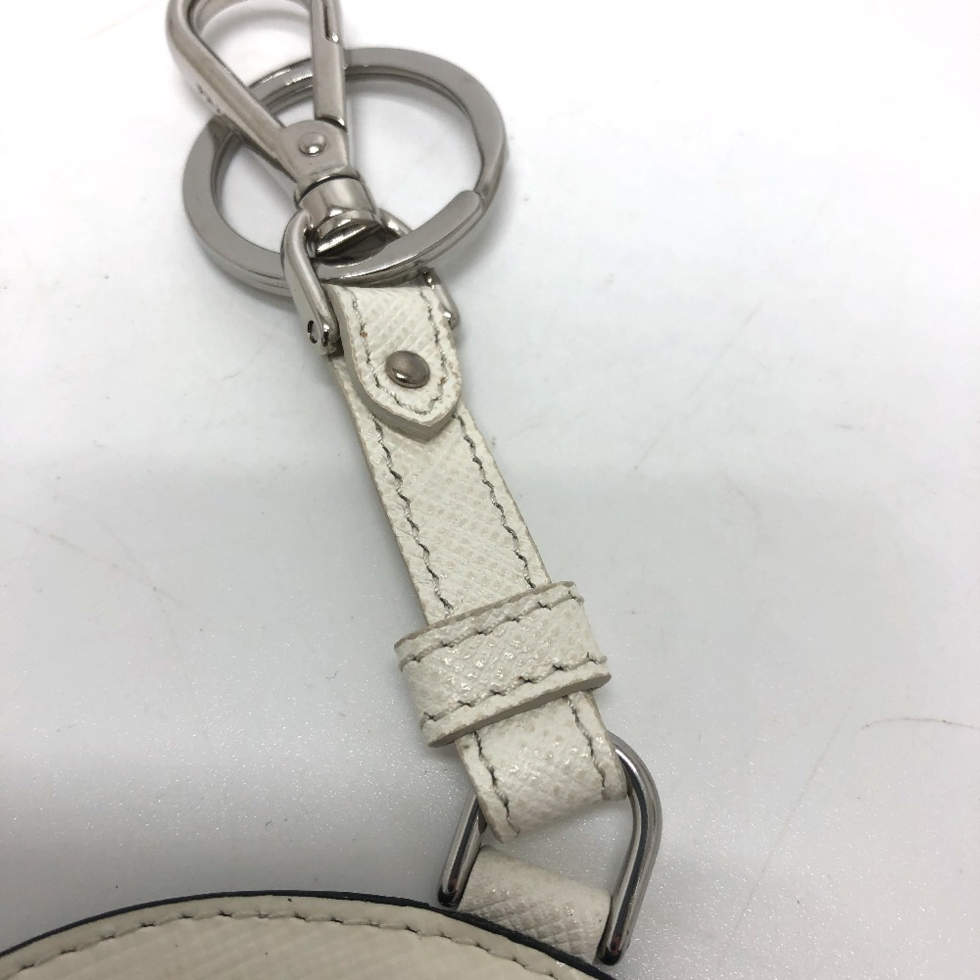 PRADA 2TL296 Key Ring Charm Fashion Accessory Keychain Saffiano Leather Women's White