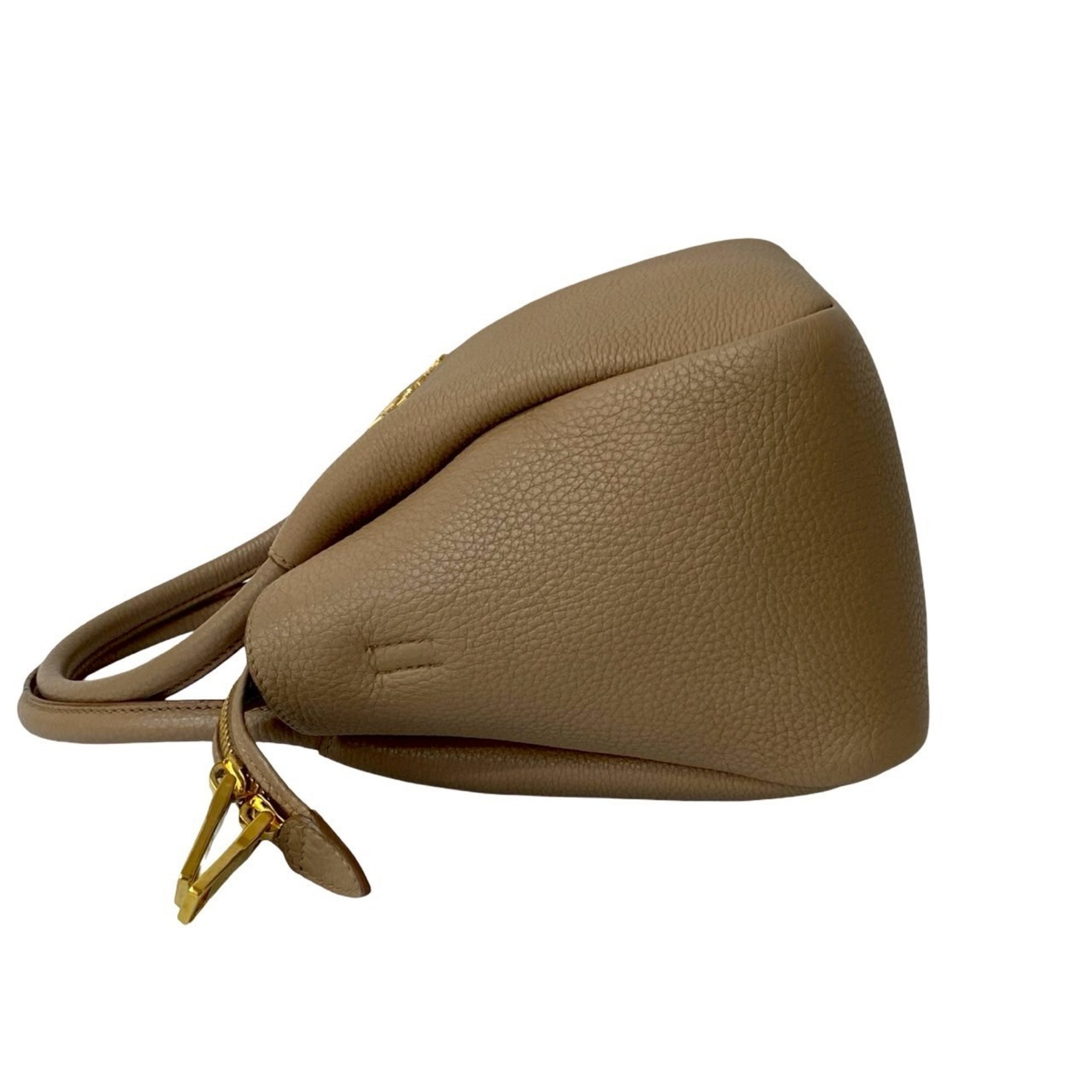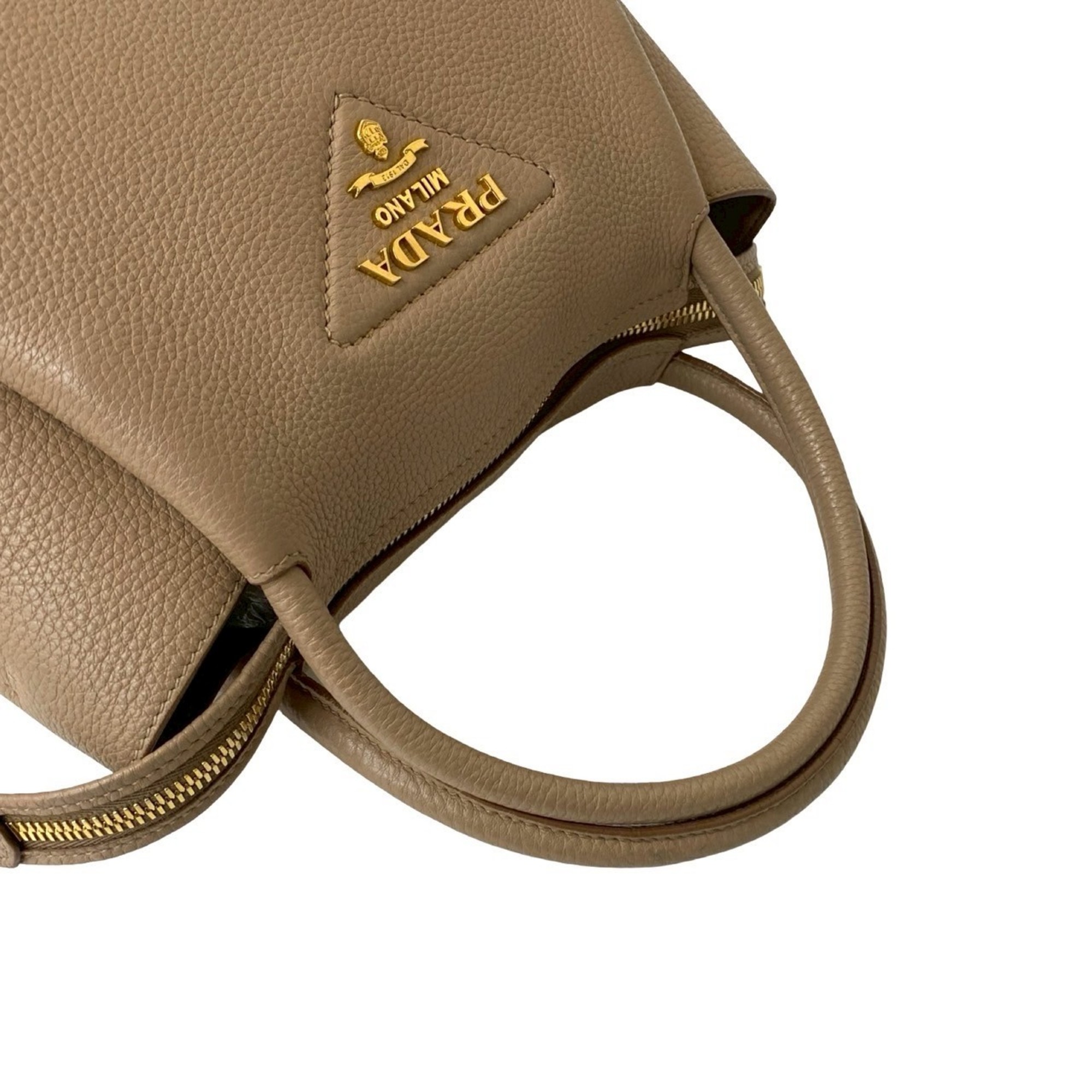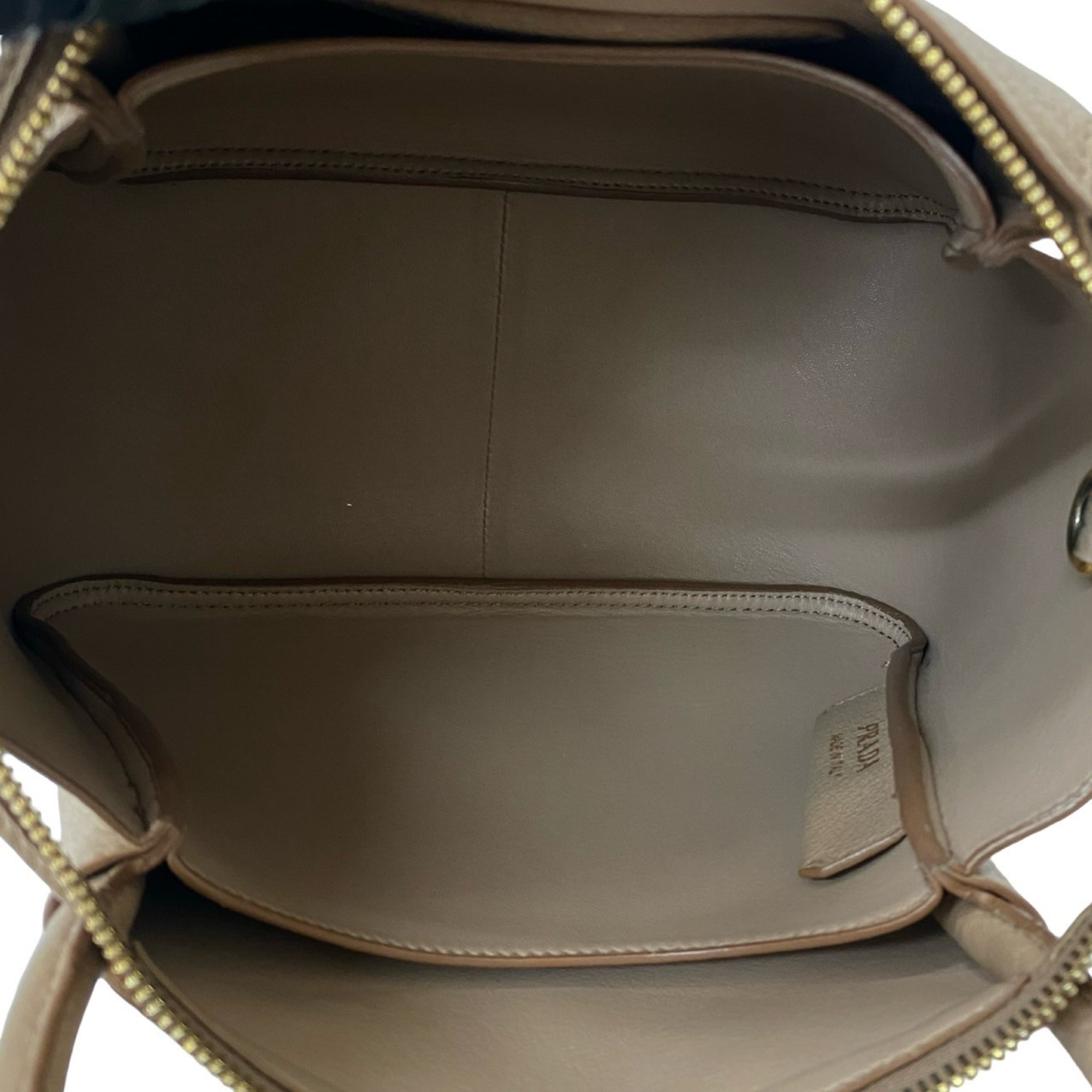 Prada Flu Vitello Dino Logo Hardware Soft Leather 2-Way Handbag/Shoulder Bag Beige a58-6
