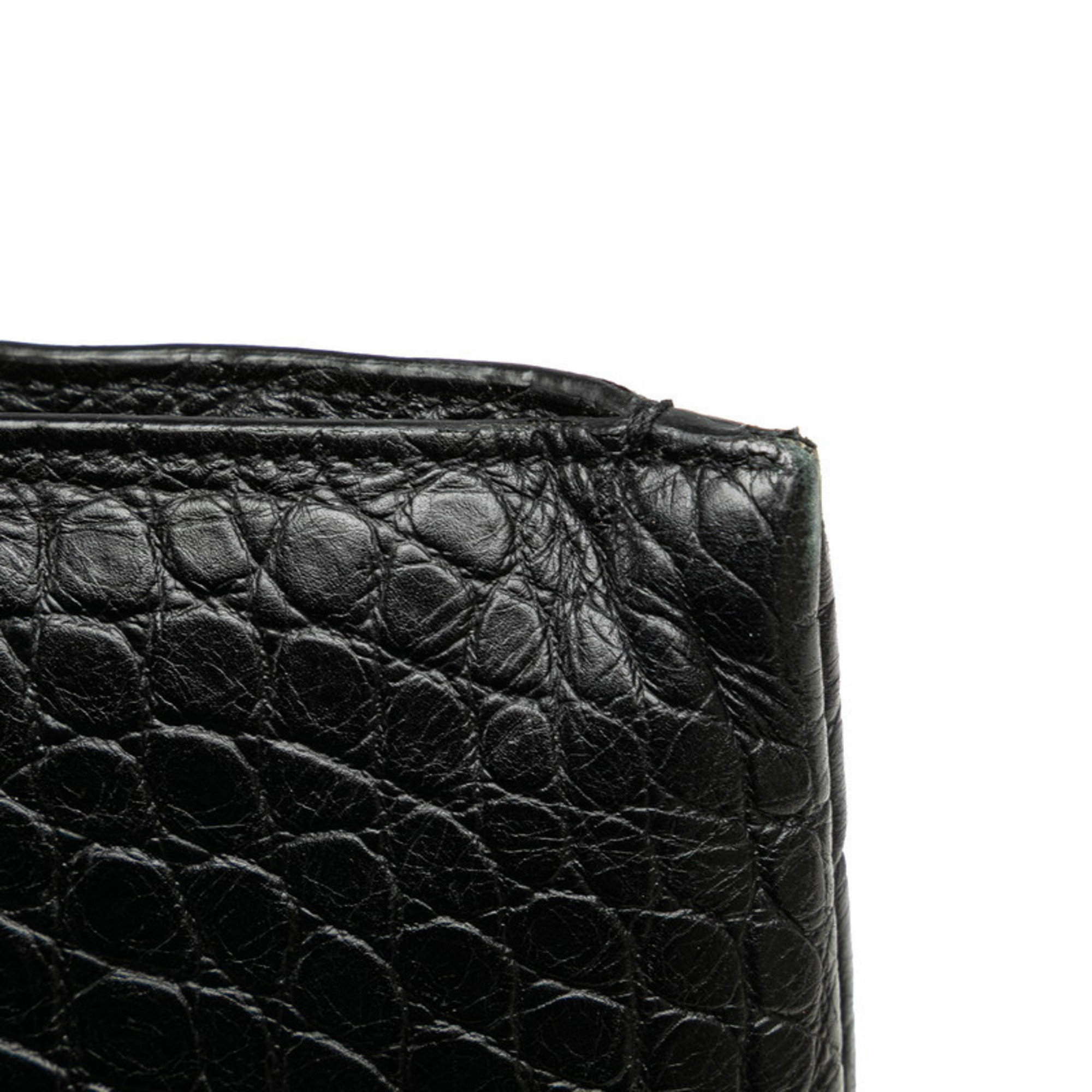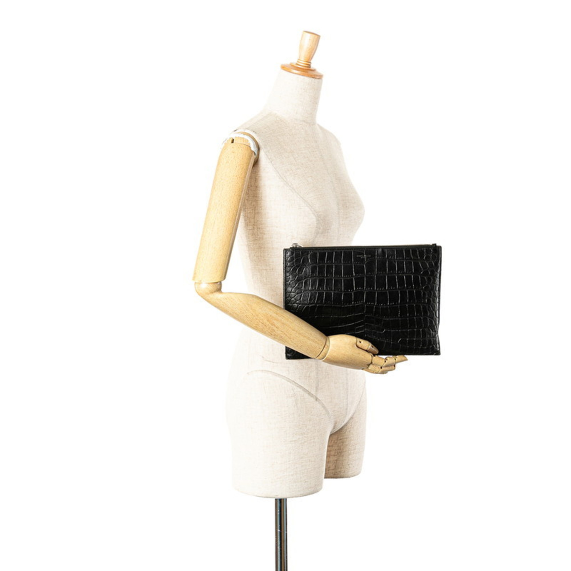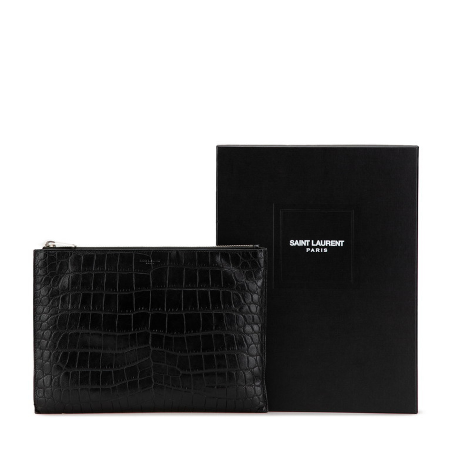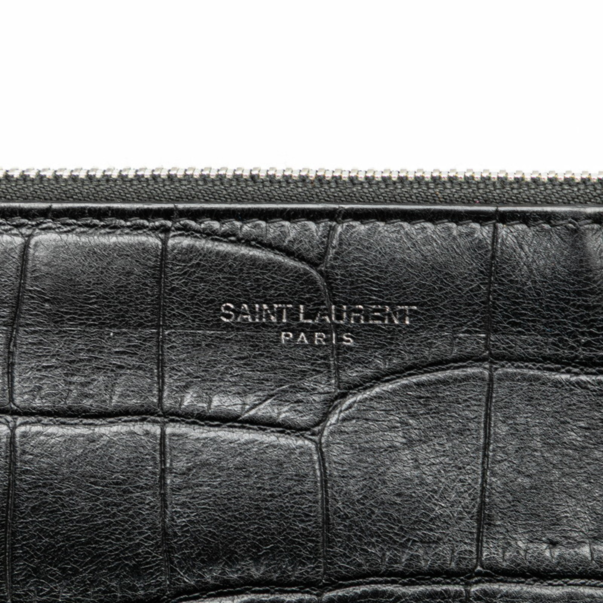 Saint Laurent Crocodile Embossed Clutch Bag/Second Bag 39729 Black Leather Men's SAINT LAURENT