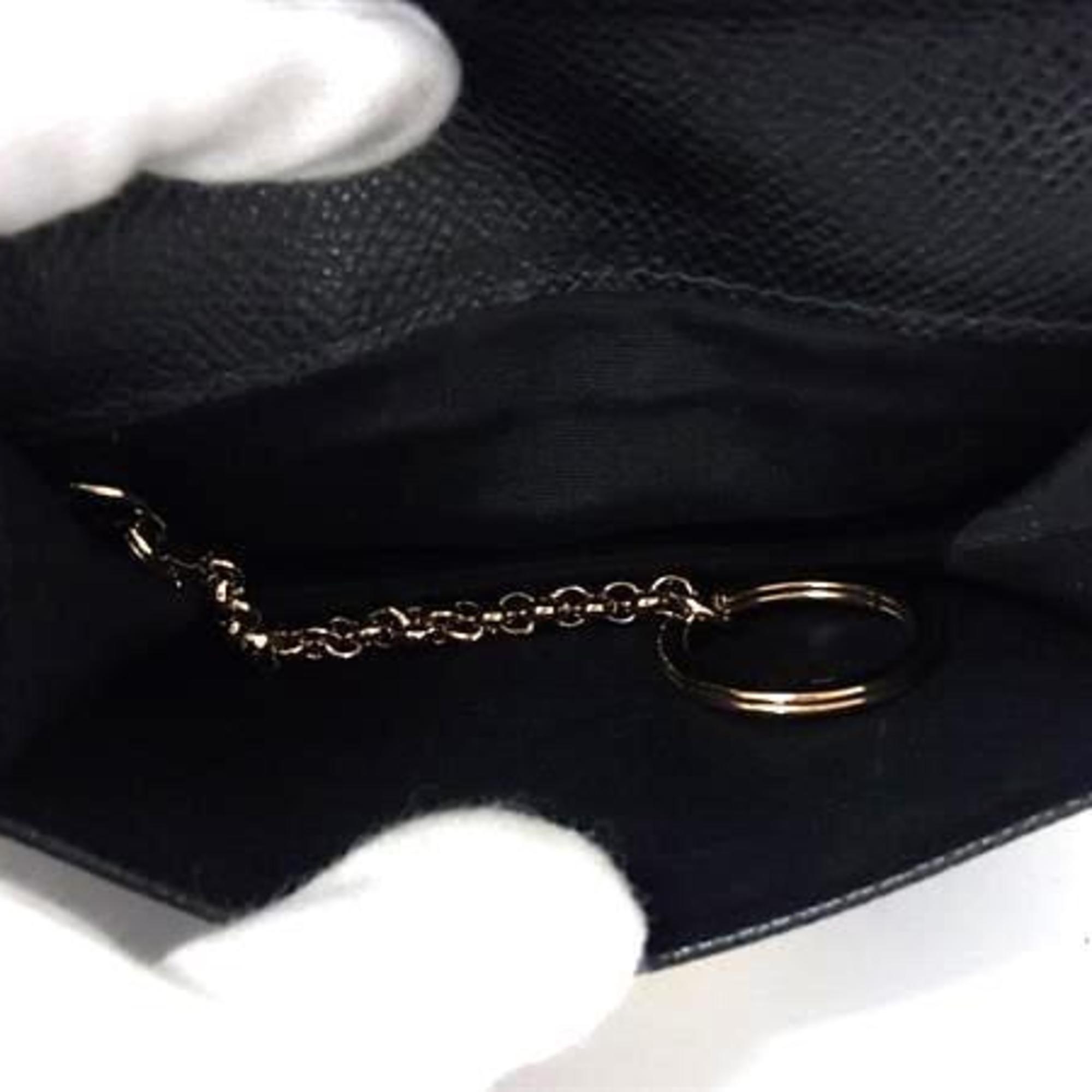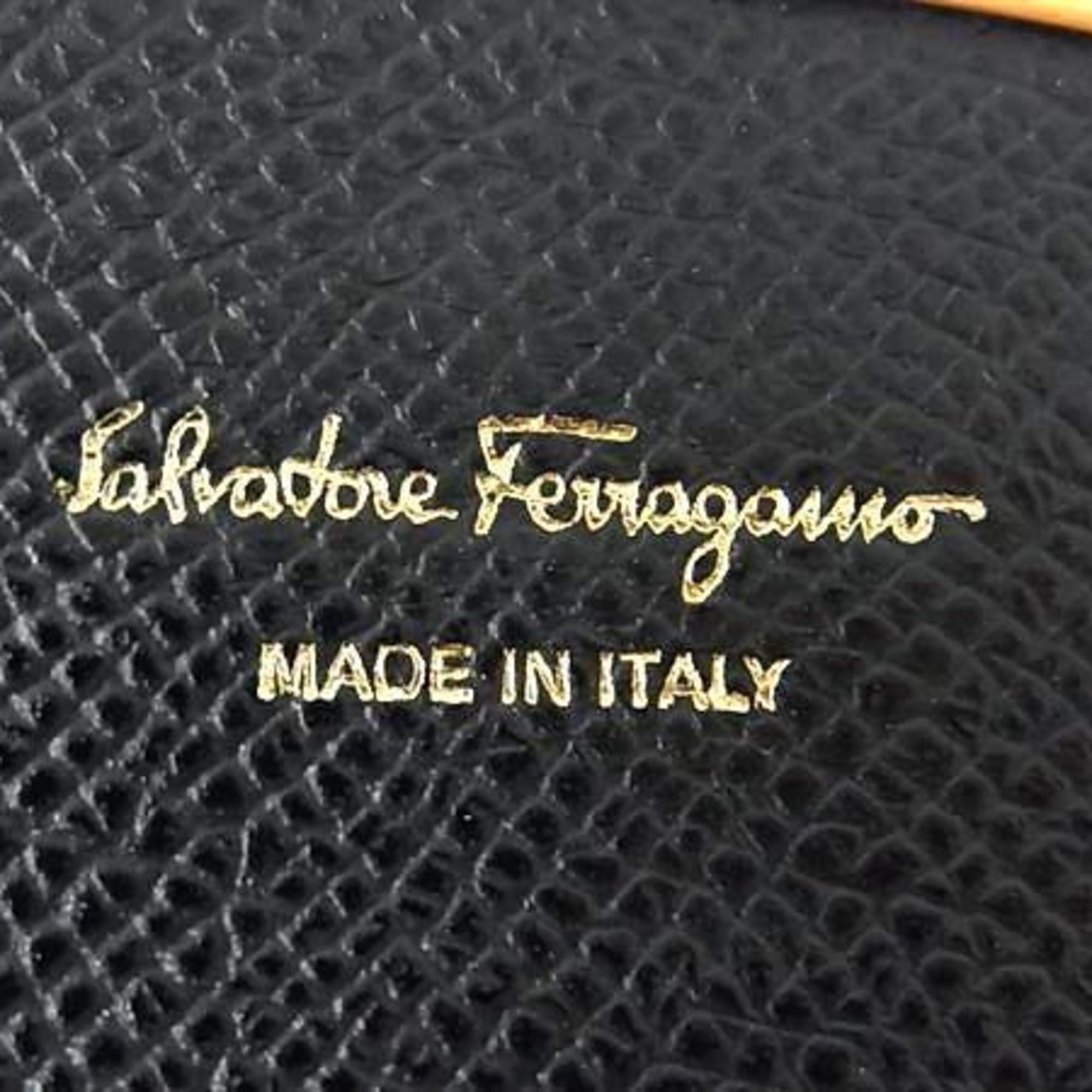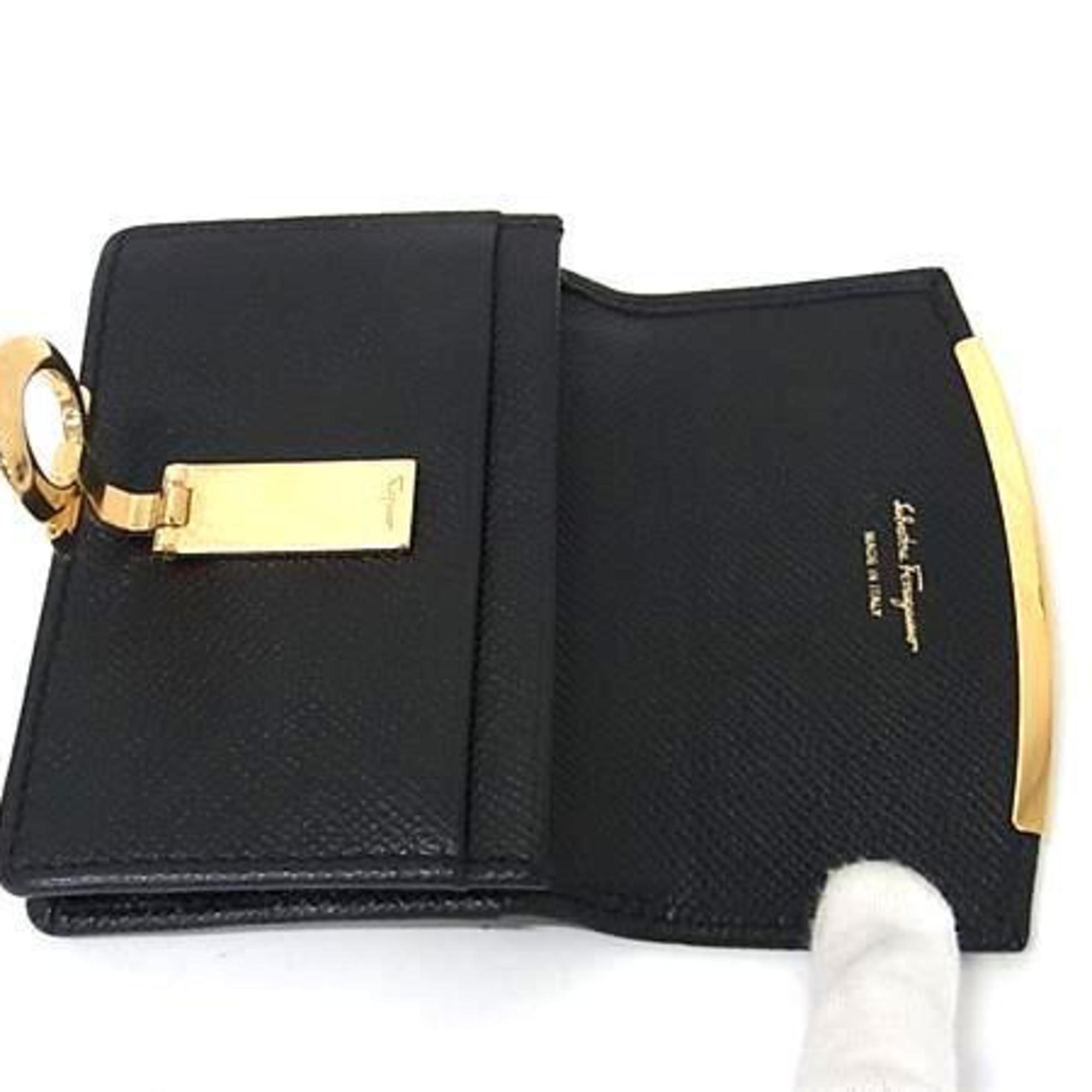 Salvatore Ferragamo Gancini Business Card Case, Size 22, D198, Black Leather, Women's