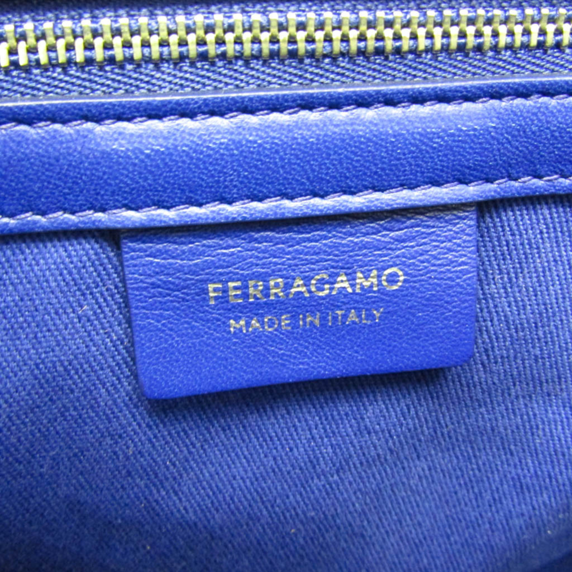 Salvatore Ferragamo GG-213985 Men,Women Nylon Canvas Tote Bag Blue