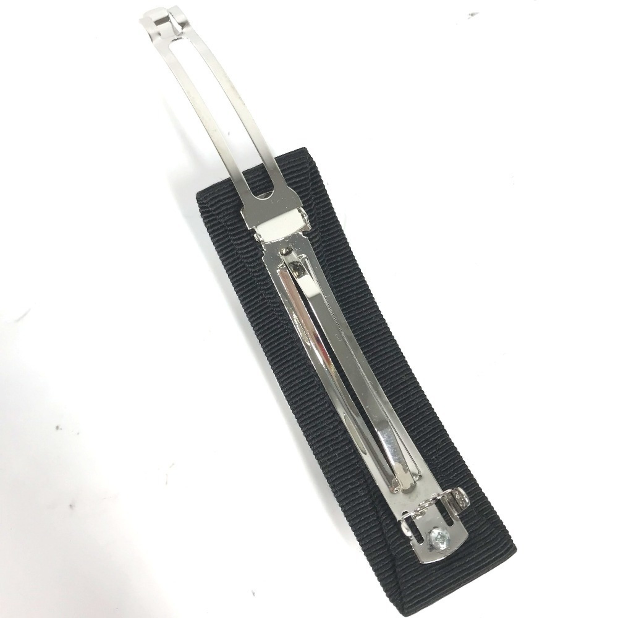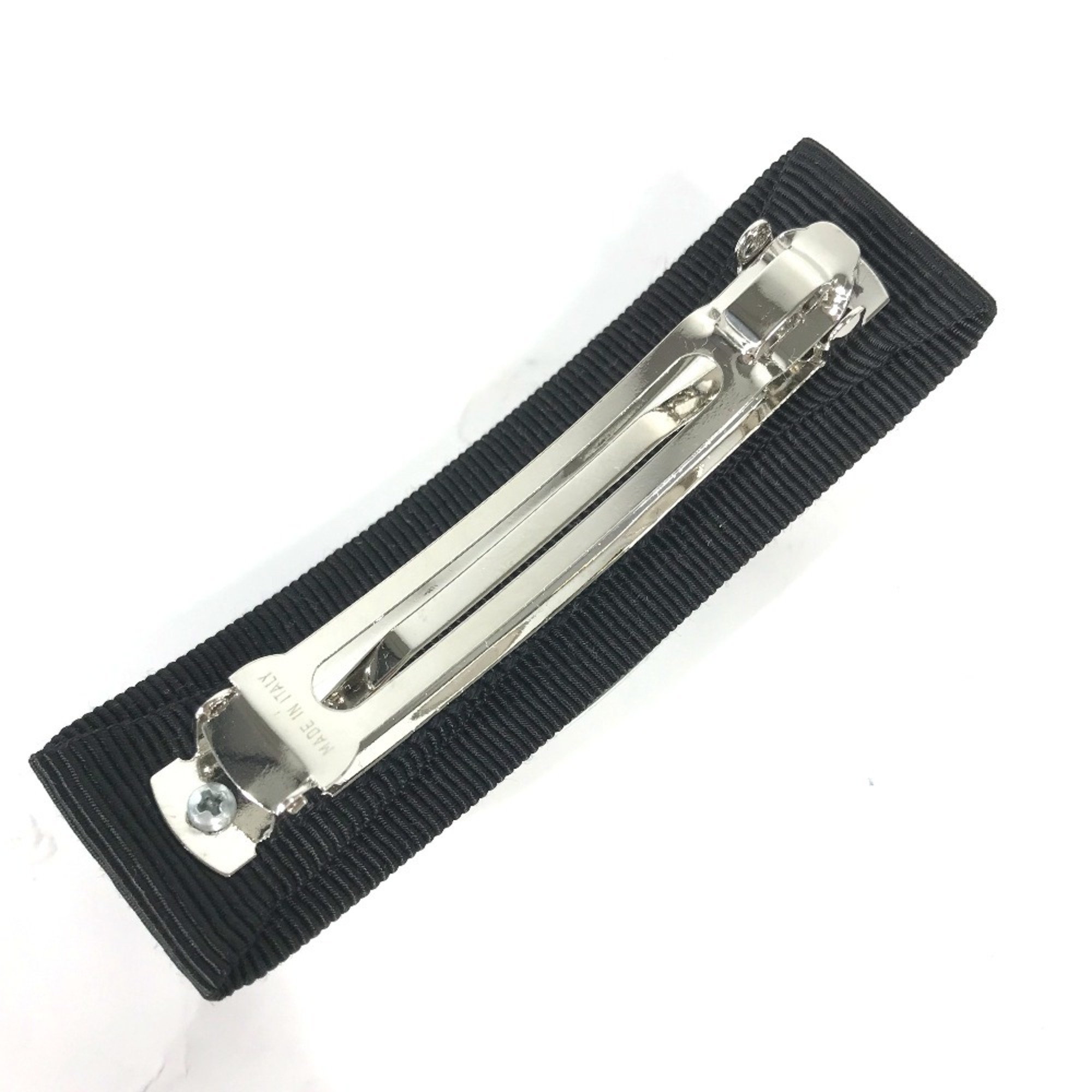 Salvatore Ferragamo logo Vara ribbon and rhinestone hair accessory, nylon barrette, black, like new, for women.