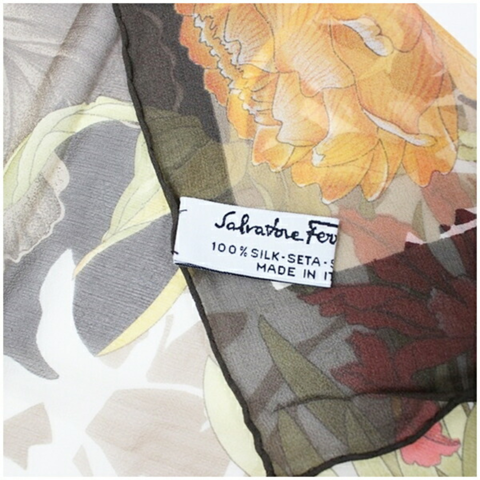 Home / ACCESSORIES / Salvatore Ferragamo Women’s Unused Silk Rectangular Scarf in Gray and Orange