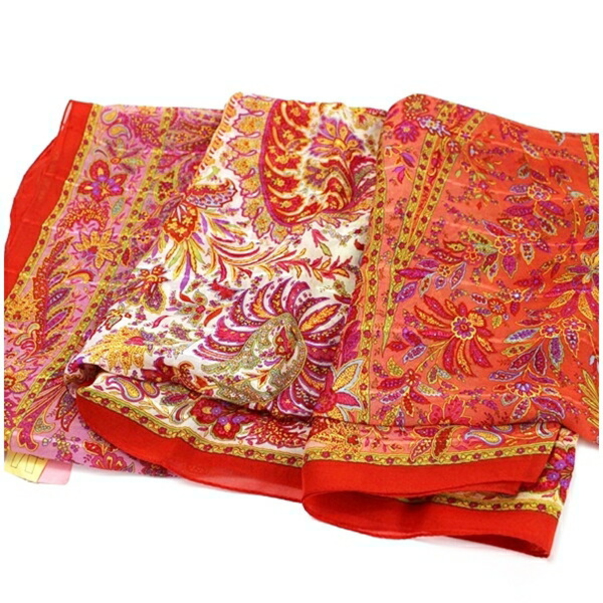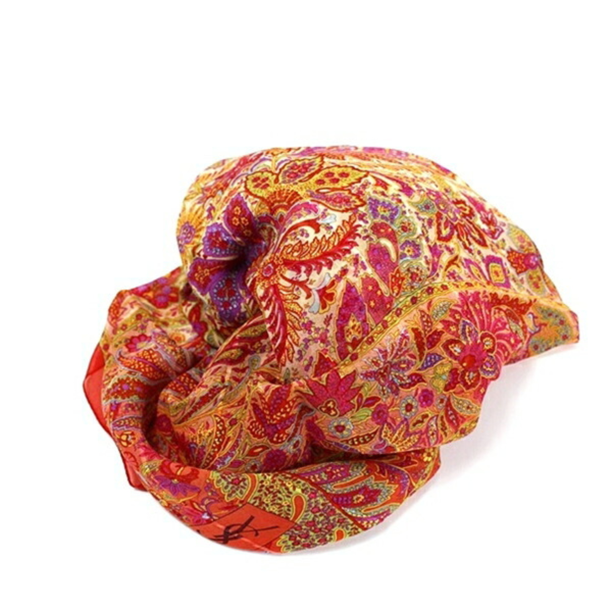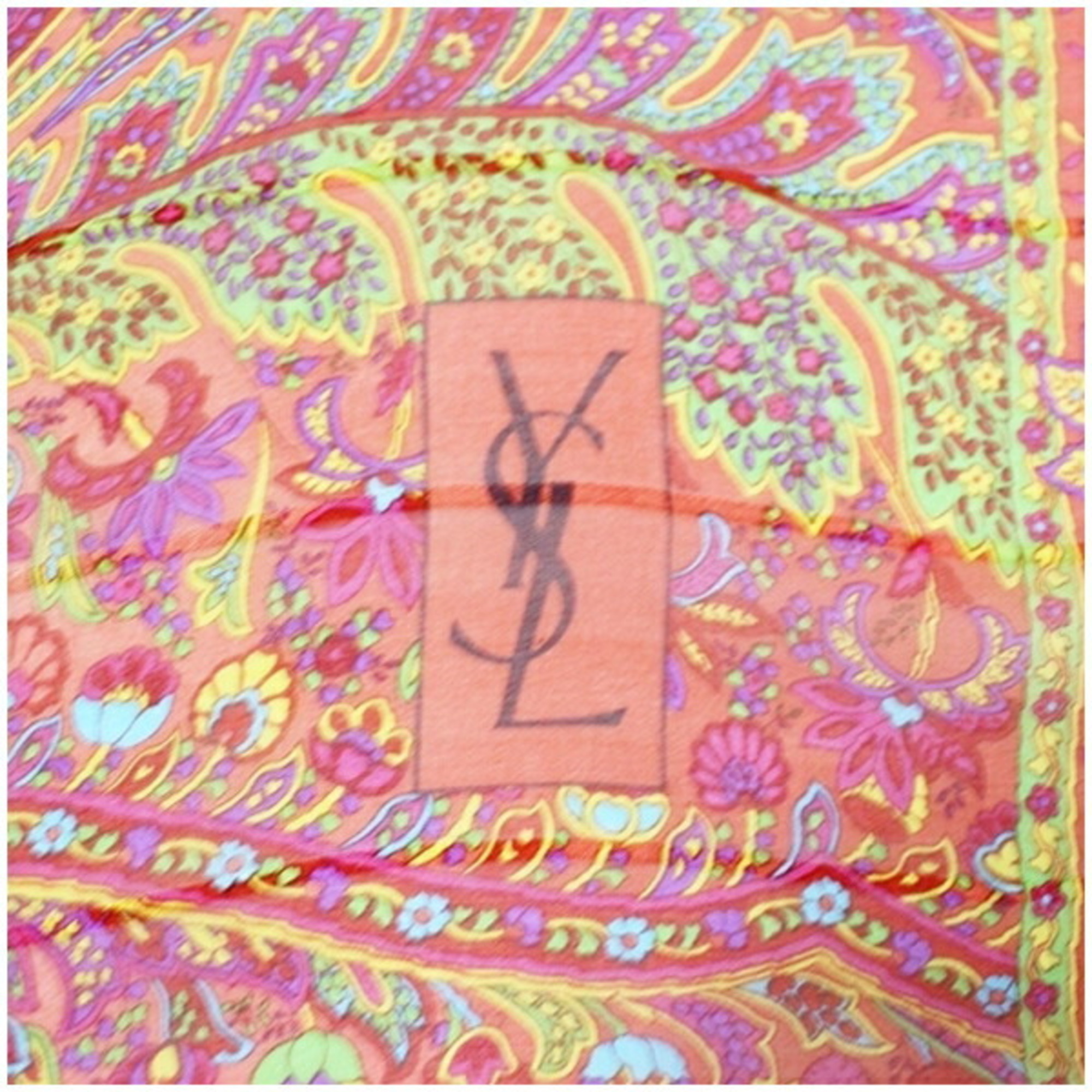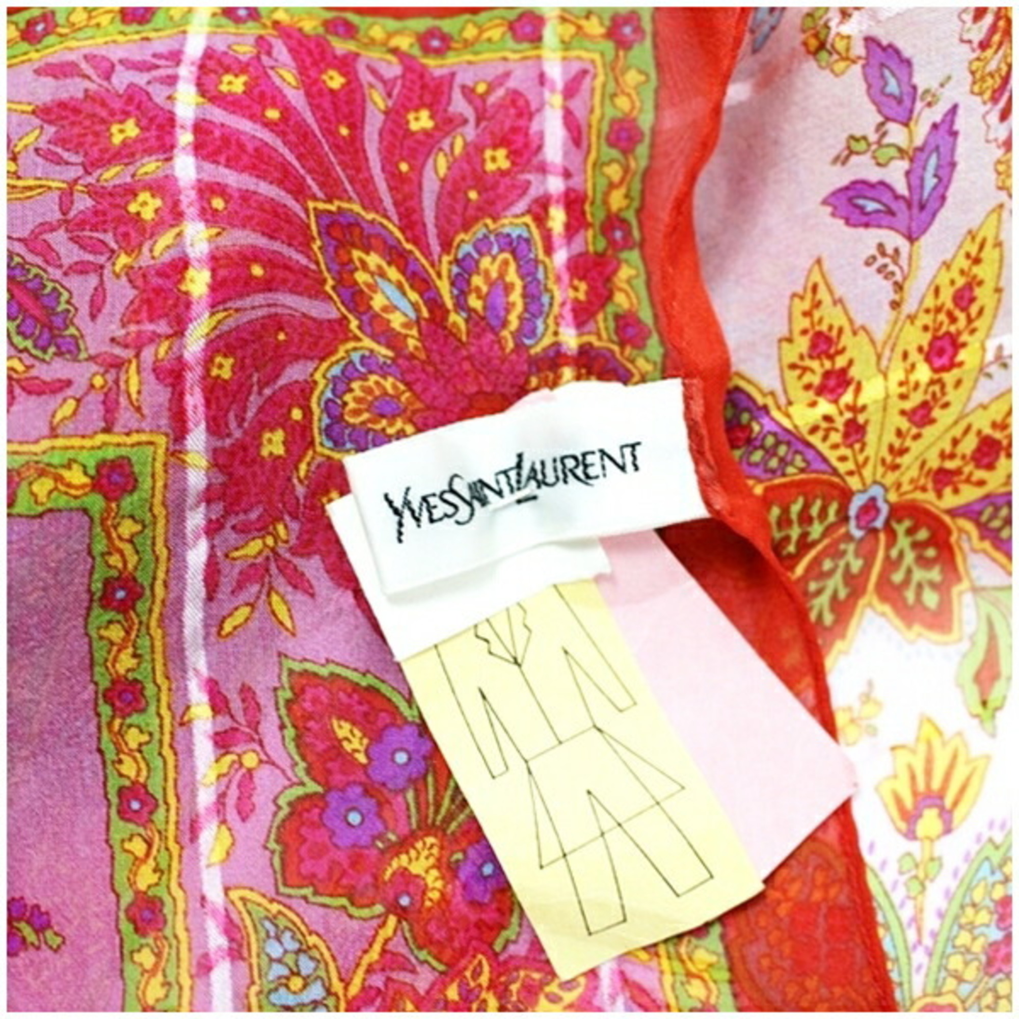 Yves Saint Laurent Large Silk Scarf Red x Cream YVES SAINT LAURENT Women's